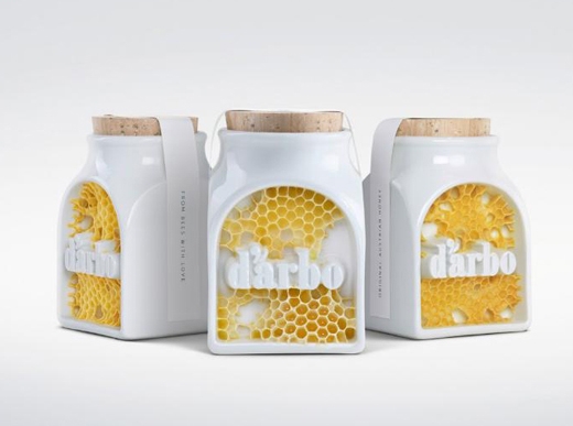 這款包裝設計的驚艷之處在于,它是讓奧地利蜜蜂使用自己的蜂蠟為蜂蜜罐創造了第一個有機標簽。為實現這一設計,我們開發了特殊的瓷罐,然后將這些罐子交付給奧地利的養蜂人,他們將蜂蜜罐放入蜂箱中,使蜜蜂們在這罐子上制作出有機標簽。
